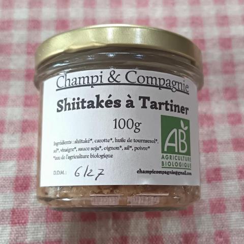 "Délice aux Shiitakés" : Tartinade végétale épicée avec du peps, faite avec nos shiitakés. Elle ravira vos papilles lors d'un apéritif ou pique-nique.