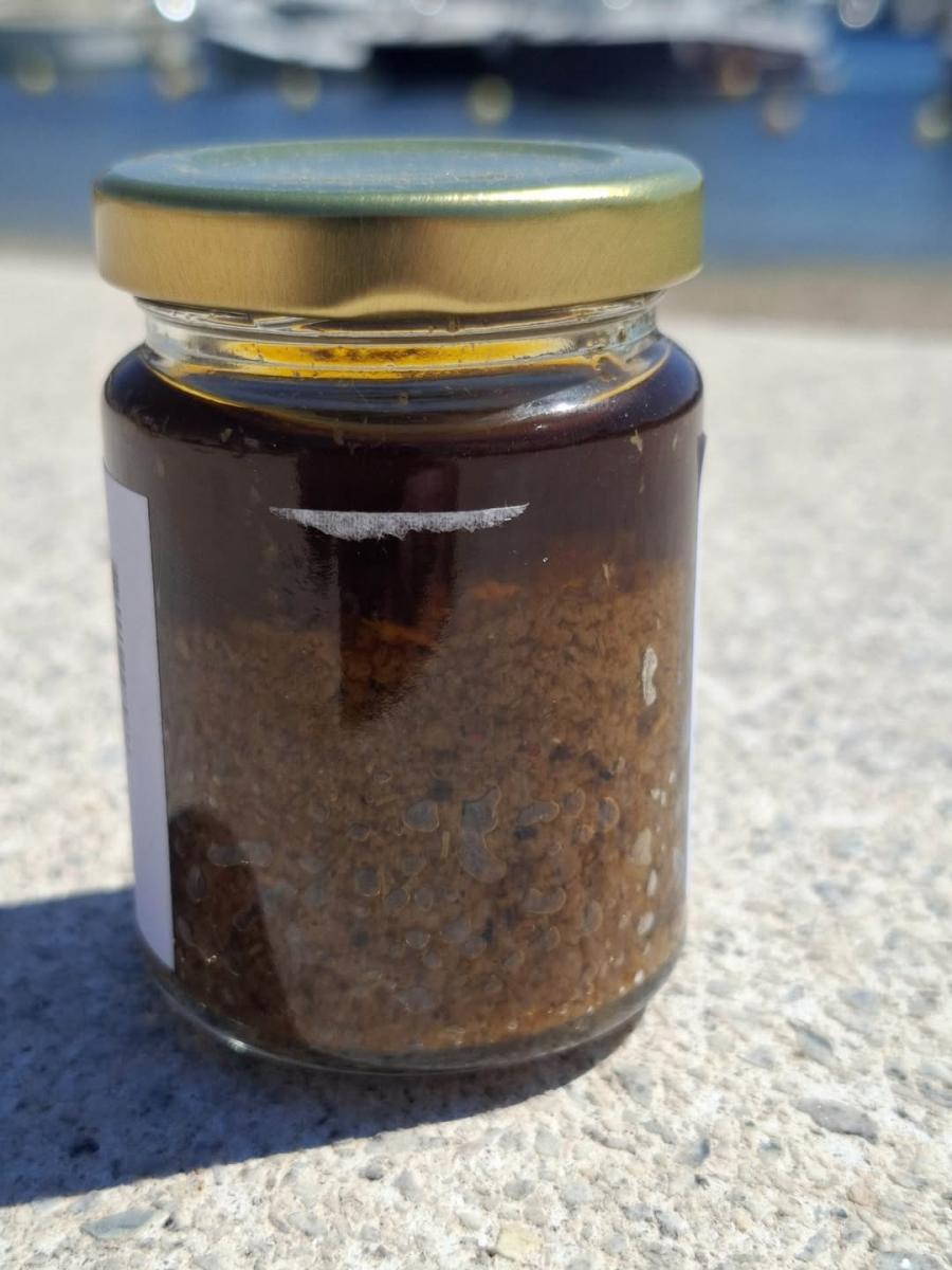 Ses Ingrédients : huile tournesol, jus de citron, sel, oignon, coriandre, ail, paprika, graine de moutarde jaune, poivre noir de Madagascar, romarin, cumin, persil, baies roses de Madagascar.