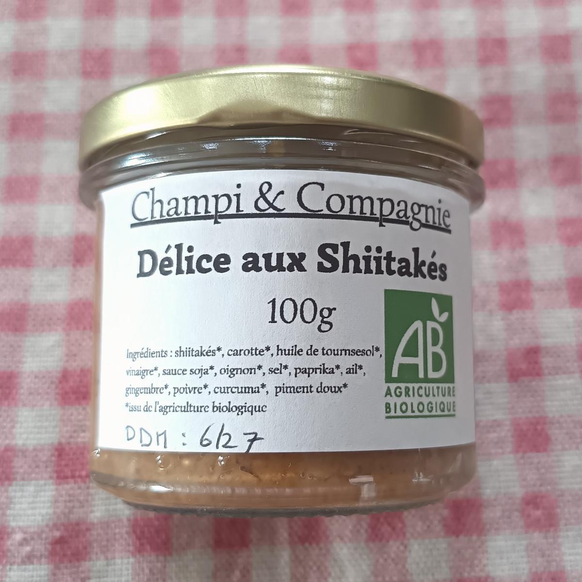 "Délice aux Shiitakés" : Tartinade végétale épicée avec du peps, faite avec nos shiitakés. Elle ravira vos papilles lors d'un apéritif ou pique-nique.